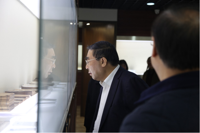 中醫(yī)藥歷史文化源遠流長,是中華民族貢獻給世界的一項瑰寶,新漁生物董事長馬建中先生以私人收藏展出的形式在新漁生物建立了“中醫(yī)藥歷史博物館”,用大量的文物和文獻梳理了中醫(yī)藥上下五千年的歷史發(fā)展歷程,是九三學(xué)社眉山市委會掛牌成立的“中醫(yī)藥文化傳承與發(fā)展合作基地”。 叢斌主席在參觀過程中對很多藏品進行了點評和肯定,并囑咐新漁集團馬建中先生一定要堅持不懈的將中醫(yī)藥歷史文化發(fā)揚光大。
