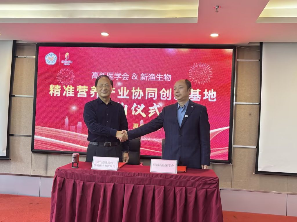 簽約儀式上,成都高新醫(yī)學會醫(yī)工融合協(xié)同創(chuàng)新中心馮懷志主任和四川新漁現(xiàn)代生物技術有限公司董事長馬建中分別致辭,表達了雙方對此次合作的高度重視和美好愿景,隨后雙方代表共同簽署了合作協(xié)議。簽約儀式結束后還舉行了成都高新醫(yī)學會精準營養(yǎng)產業(yè)協(xié)同創(chuàng)新基地的授牌儀式。